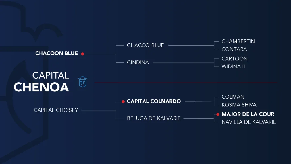 By the ultra-modern Chacoon Blue, who earned a perfect 10 for jumping at his 30-day test, Capital Chenoa is an eye-catching grey with powerful movement and a strong jump. Her dam, Capital Choisey (by Capital Colnardo), is also the dam of Horizon and Romney – both known for their scope and type. The maternal line continues through Beluga de Kalvarie, who also produced Der Senaat III, a 1.60m performer.